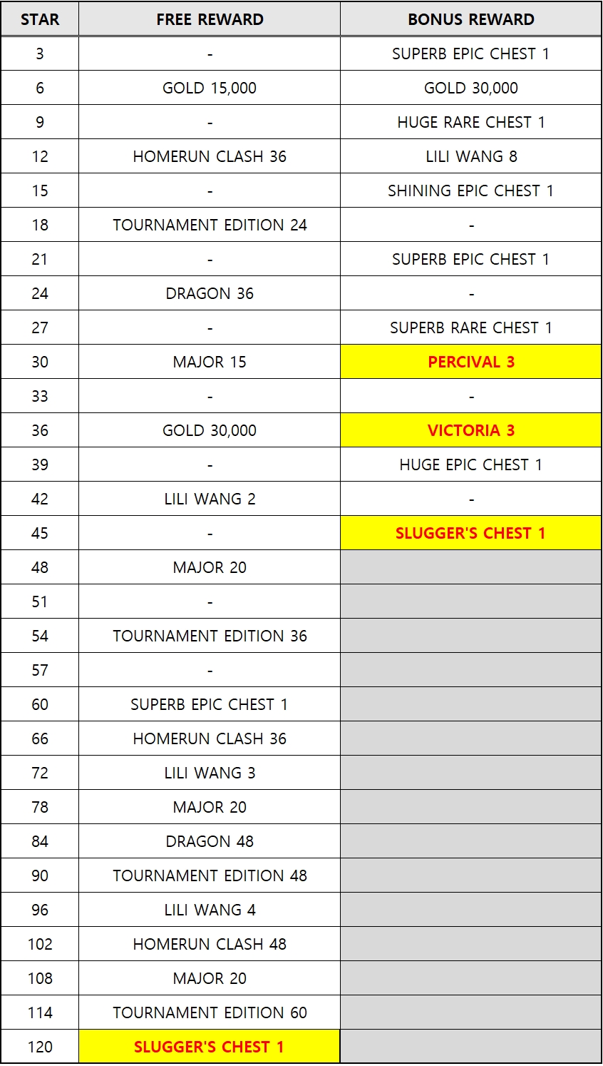 ▶ Batter Lineup - VICTORIA : FIRE BAT, SNOW BEAST, LUCHADOR, HOME RUN CHARM, SNIPER Lv.5 - LILI WANG(SUN WUKONG) :SCEPTOR, TURBAN, DESERT VISION, HORSESHOE & CHAIN, BIG BANG Lv.6 - PERCIVAL(FIREFIGHTER) : SCEPTOR, SOMBRERO, HORUS, ICY RING, POINT BREAKER Lv.6