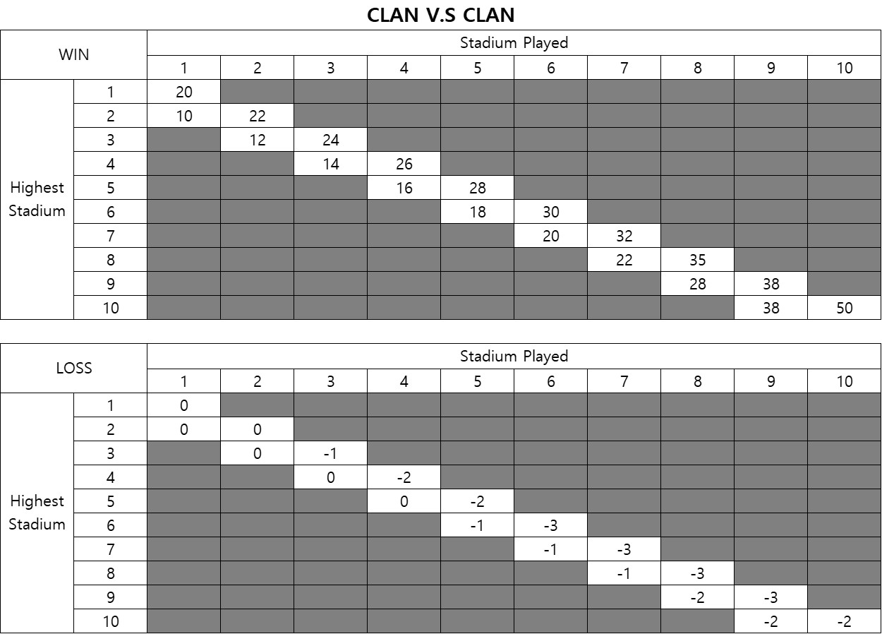 * All members are eligible to receive clan ranking rewards : RANK 1 - HUGE EPIC CHEST3 : RANK 2 - HUGE EPIC CHEST2 : RANK 3 - HUGE EPIC CHEST1 : RANK 4~10 - HUGE UNIQUE CHEST1 : RANK 11~30 - SHINING UNIQUE CHEST1 : RANK 31~50 - SHINING RARE CHEST1 : RANK 51~100 - RARE CHEST1